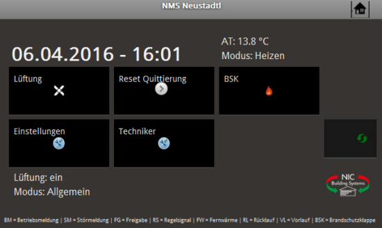 NIC Building Systems GmbH aus Niederkappel  »  Referenzen  »  Heizungs- und Lüftungssteuerung NMS Neustadtl